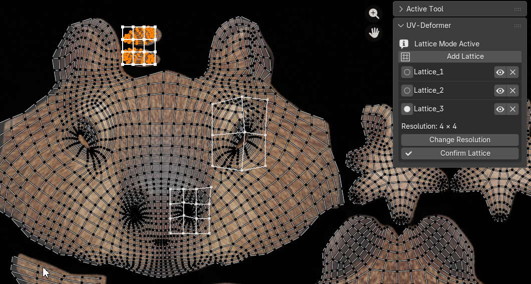 • Lattice Management: Toggle visibility, delete, or confirm (bake) individual lattices directly from the UV Editor sidebar.